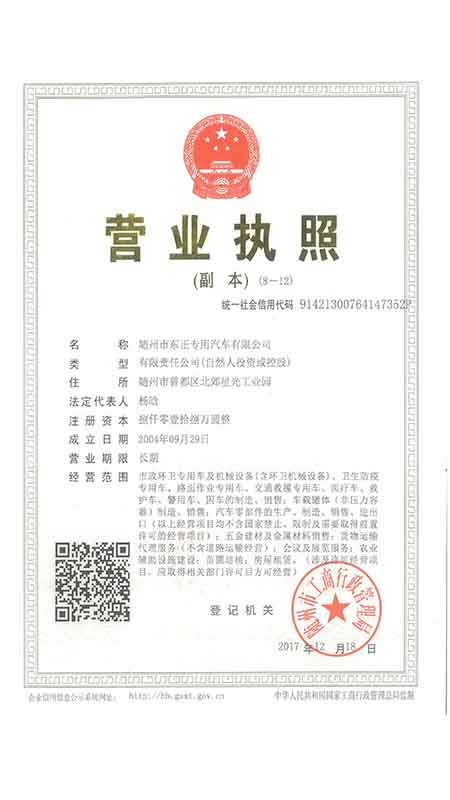 隨州市東正專用汽車有限公司地處馳名中外的中華始祖炎帝神農(nóng)故里,編鐘之鄉(xiāng)汽車名城——隨州市。本廠是國家定點改裝廠,是東風汽車公司改裝基地,是一汽貿易公司網(wǎng)點單位,有九大生產(chǎn)車間,所有產(chǎn)品都是國家《公告》有光盤的產(chǎn)品,全部產(chǎn)品都符合新法規(guī),滿足新標準。