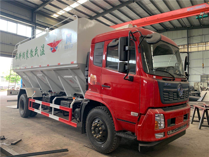 上裝罐體:罐體材質(zhì)采用4mm優(yōu)質(zhì)碳鋼板,整車3條絞龍,通過變速箱帶動取力器取力后帶動各絞龍工作,頂部絞龍用液壓控制舉升,可左右旋轉(zhuǎn)180°。罐體內(nèi)分為叁個倉,可以獨立控制各分倉卸料順序和速度。(備注:此報價為標(biāo)配,國產(chǎn)電機(jī),德力西電柜) 底盤配置:東風(fēng)天錦駕駛室,康明斯180馬力,法士特小8檔變速箱,5000mm軸距,10.00R20,18PR鋼絲胎,電動門窗,中控鎖,ABS,方向助力,空調(diào)(油耗24L\100km)