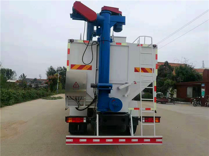 上裝罐體:罐體材質(zhì)采用4mm優(yōu)質(zhì)碳鋼板,整車3條絞龍,由3個5.5KW電機380V外接電源帶動,頂部絞龍用液壓控制舉升,可左右旋轉(zhuǎn)180°。罐體內(nèi)分為肆個倉,可以獨立控制各分倉卸料順序和速度。
